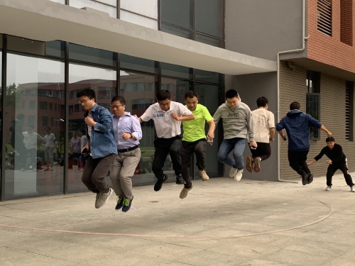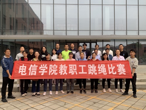 “20、21、22……”“加油,加油!”整齐而激昂的计数的声音响彻整个学院东门,此刻跳绳的队伍正是学院办公室的队伍,大家步伐一致,动作整齐划一,仿佛融为一体,只见一次次甩绳,又一次次抬脚,配合非常默契。